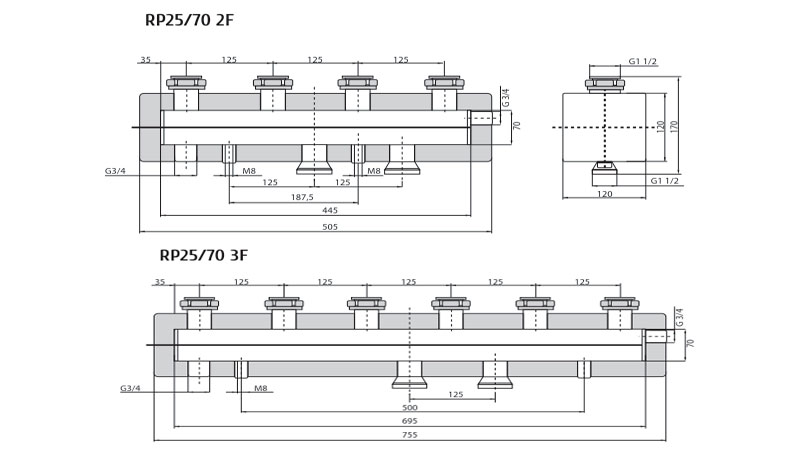 | Распределитель RP25/70 2F для двух отопительных контуров |