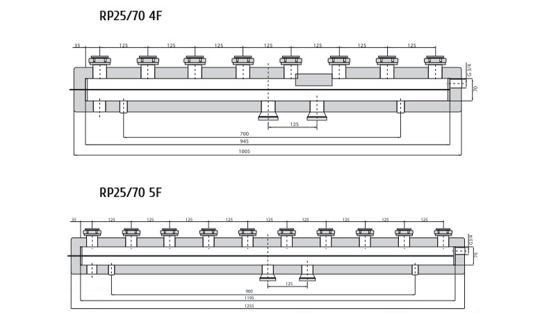 | Распределитель RP25/70 4F для четырех отопительных контуров |