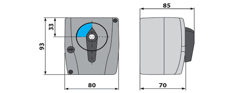 - угол оборота: 90°